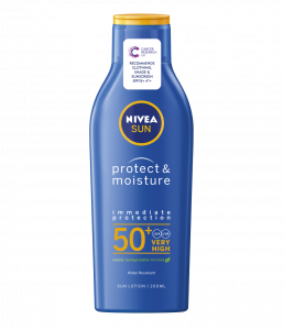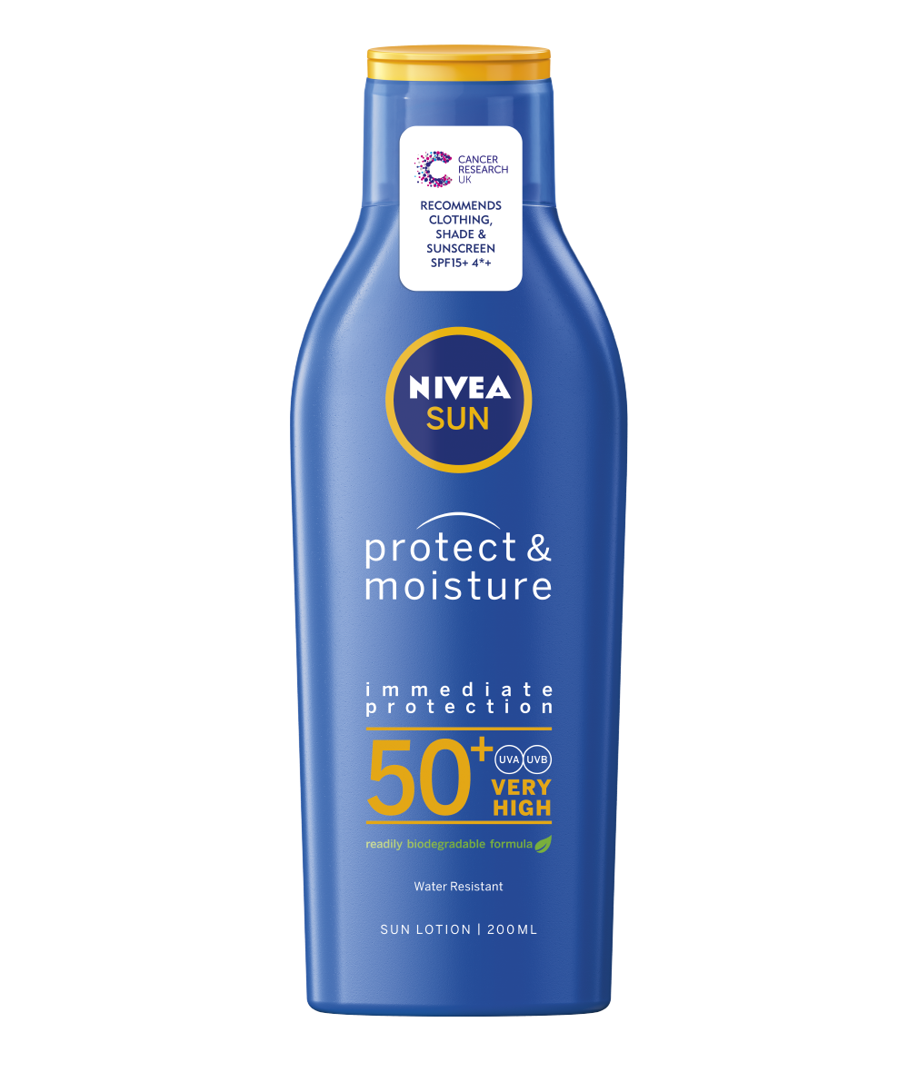 NIVEA SUN Protect & Moisture Lotion Lotion SPF 50 (200ml), Suncream Moisturizing with SPF50 + Mbrojtje të përparuar nga dielli, zvogëloni rrezikun e pasojave nga dielli Mbrojtja hidratuese - Kremi ynë hidratues suncream ofron shumë mbrojtje efektive kundër ekspozimit të tij. UVA/UVB. Rezistent ndaj ujit - Suncream 50 për mbrojtjen nga dielli është shumë rezistent ndaj ujit, kështu që do të zgjasë më gjatë në diell. Sigurohuni që të riaplikoni pasi keni hyrë në ujë.